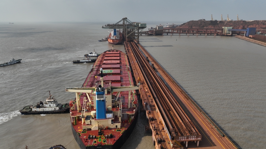 宝武已经开始布局。1月17日,随着一声悠长的汽笛声落下,首船西芒杜铁矿石运抵浙江马迹山港,标志着这座由宝武参与投资建设的全球最大赤铁矿全程供应链贯通。