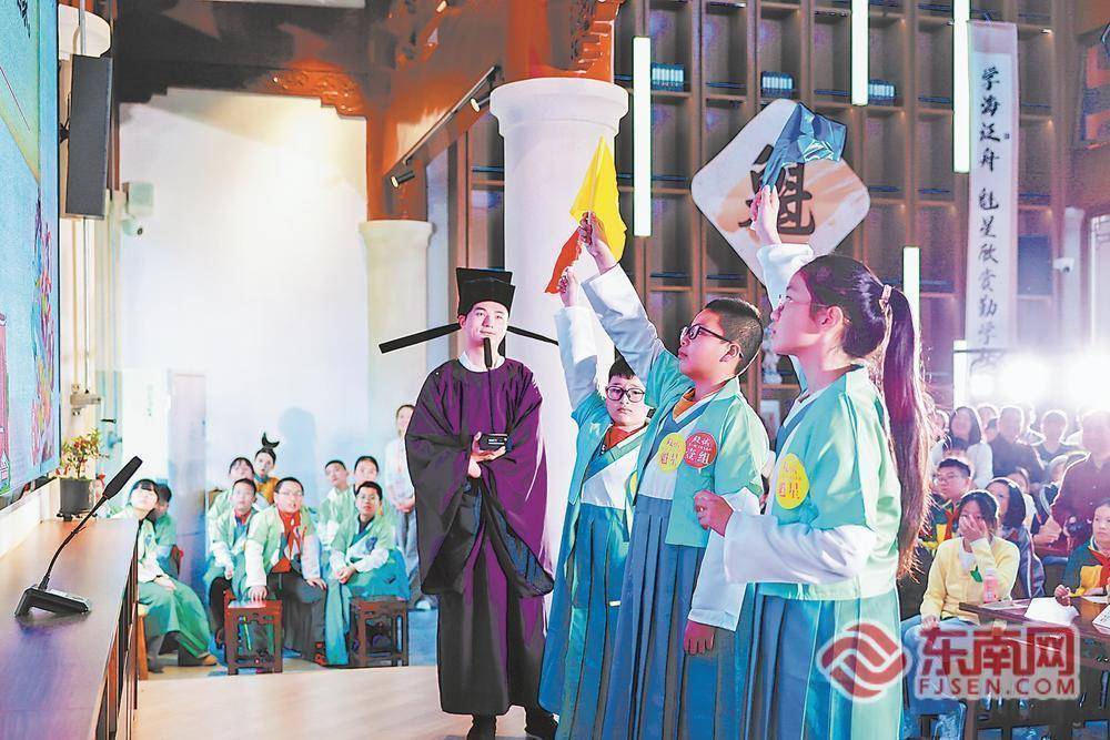 (福建日报记者 汤海波 摄影报道)21日,2026年永春县魁星书院少年诗词大会举行。少年学子齐聚魁星岩,在“文运之地”复刻古代科举“乡试—会试—殿试”三级礼制,以诗为媒,以赛会友,通过飞花令、诗句接龙、诗词填空等多样题型比拼诗词功底,在庄重仪式与趣味竞赛中体悟中华诗词之美,解锁传统文化新体验。